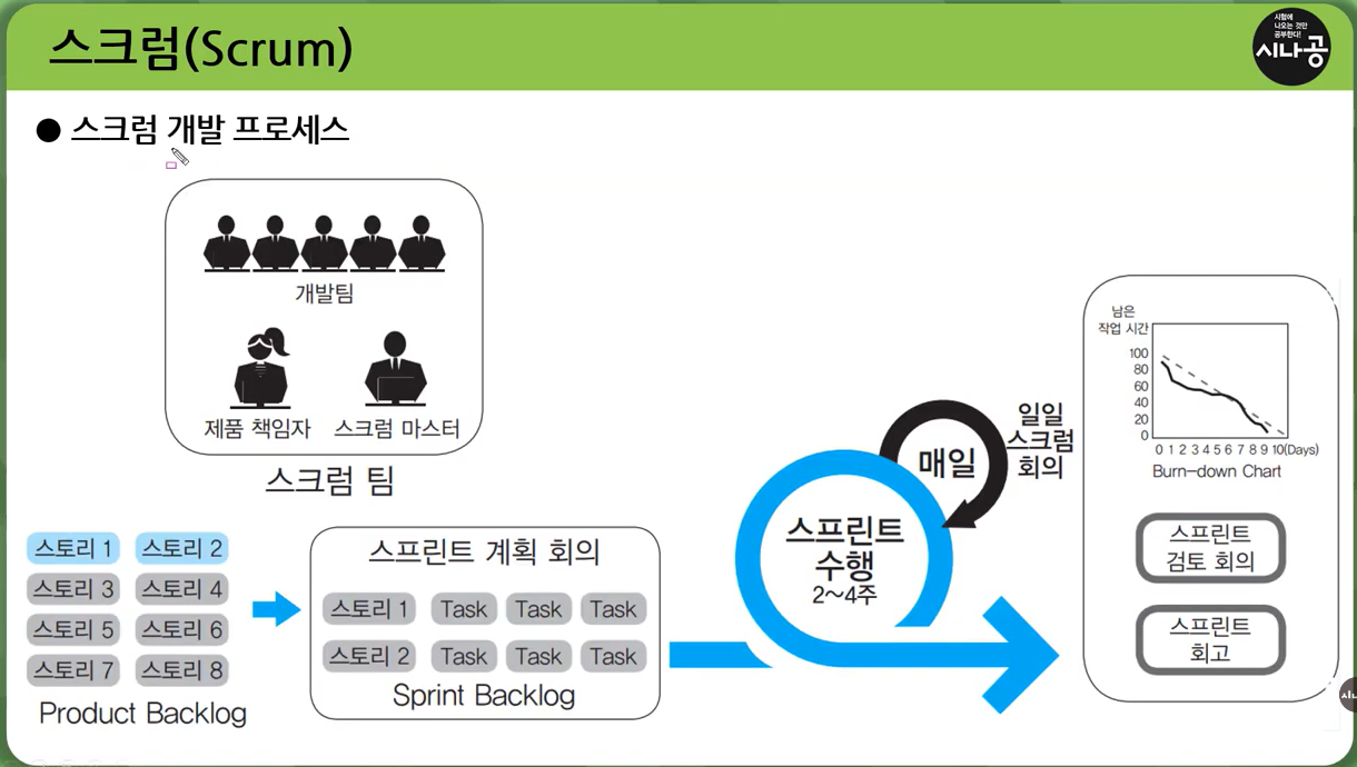 - 스프린트 : 실제 소프트웨어 개발 작업 과정