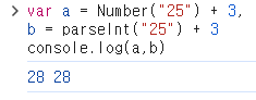 숫자와 문자를 더할 때, 숫자를 문자로 자동 형 변환하여 붙여준다. 이는 의도한 바가 아닐 수 있다.
