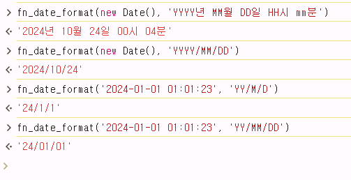 다음으로 필요한 코드는 날짜를 원하는 포멧에 맞게 뿌려주는 함수였다.