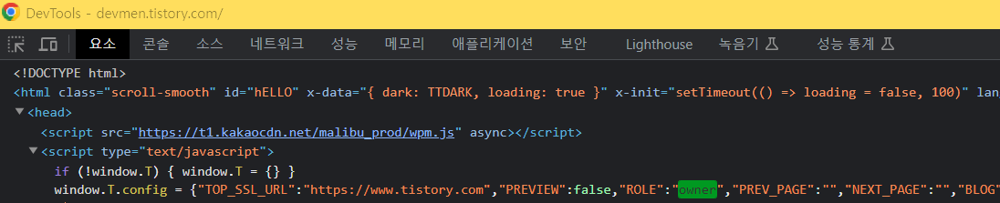 window.T.config.ROLE 의 값이 guest일 때, 해당 버튼은 보이지 않고 owner일 때는 버튼이 보이는 걸 확인 할 수 있습니다!
